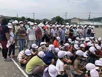 計画では、2・3時間目の学習を予定していましたが、昨日晴れ梅雨明け宣言となり、天気予報でかなりの猛暑が予想されるので汗・焦る日程を変更し、1時間目から出かけることにしました。地域でご指導いただく方、保護者ボランティアの方など、ご予定を変更することになり、申し訳ありません。ご協力に感謝いたしますお辞儀