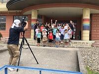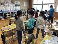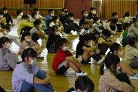 朝の会が終わってすぐに、3・4年生が体育館に移動して、リハーサルをして録画しました。