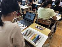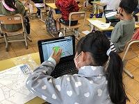1年生は、タブレットの使い方を練習していました。だんだん、先生たちも集まってきて、1年生のHelp!に対して、支援に入ってくださっていました。