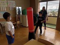 今日は、2時間目と3時間目に、「体力向上エキスパートティーチャー」の先生が来校し、ご指導いただきました。千塚小では、4年生と5年生を対象に、「投げる」運動の授業をしていただきました喜ぶ・デレ
