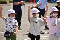 暑さ対策のため、外ではマスクを外して歩くことと、こまめに水分補給をすることに注意して、「ふるさと探検隊」の出発です!