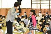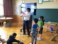 業間の時間に「英語集会」を行いました。今回は、5年生がホスト役です。代表の子どもたちが、ALTの先生と一緒にゲームのルールを説明してくれました了解周りの5年生も盛り上げてくれましたOK