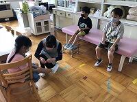 暑さ指数が高く外で遊ぶのが難しい日は、図書室でゆったり過ごすのもよいですね音楽