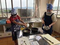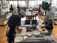 *今年初めての調理実習。感染症対策を十分に行い、クラスも半分の人数にして、2日間に分けて実施しました。