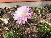 そんな朝ですが…校舎東側(体育館通路脇)の花壇のサボテンが満開ですキラキラ