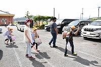 暑さ対策のため、外ではマスクを外して歩くことと、こまめに水分補給をすることに注意して、「ふるさと探検隊」の出発です!