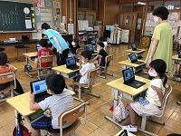 画像は、3・4年生の様子です。途中、「うがい・水分補給・休憩」の時間をとるなど、熱中症予防対策も万全に、授業を進めています了解