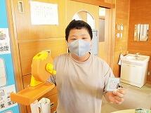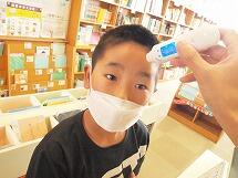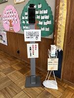 ↓↓安心安全に利用できるよう、図書室の入り口で検温・体調チェック・手指の消毒をしていますまる