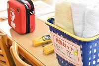 まず、養護の先生を中心に「アクションカードを使った緊急時対応研修・AED活用研修」をランチルームで行いました。