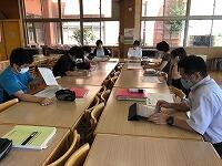 出張のため不在の先生もいらっしゃるので、日程調整・役割分担をして作業を進めています。2学期からの学習がスムーズに進められるように、先生たちは今日も汗をかきながら頑張っていますピース