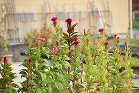 ↓↓ 昇降口南のプランターのケイトウがきれいに花を咲かせています