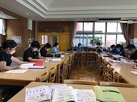 月曜日の放課後は、教職員の研修を行っています今日は「学校課題研究」の授業研究会…学習指導主任の先生を中心に、「音楽」の指導案の検討を行いました