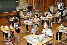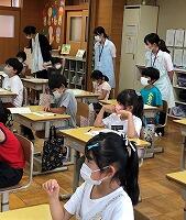 休み時間から、養護教諭の仕事を中心に、保健室やいろいろなクラスに行って観察をしたり給食の配膳を手伝ったりして、学校現場を体験していただいてます