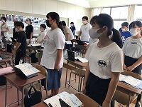 始業式の後、養護教諭から、「感染症と熱中症の予防について」の話がありました。