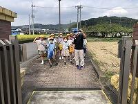 歩いて帰る子が、班で一人にならないかを確認しながら挨拶をしました。