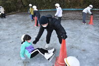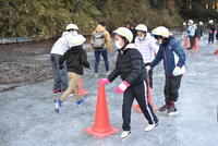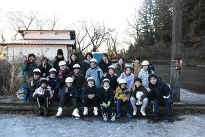 最初は、バランスを取ることが難しく立てなかったり、転んだりしていましたが、友達と練習をし、氷上を滑ることを楽しんでいる姿が多く見られましたピースこの活動の前に、今年度のオープン1月8日のあとに利用している子もいました。参加していただいたご家族の中には、千塚小の出身の方もいらっしゃって、子どもの頃の経験からアドバイスしてくださると、あっという間に滑り方が上達しました。子どもたちからは「楽しかったにっこり」や「またやりたい興奮・ヤッター!」などの声が多く聞こえました。