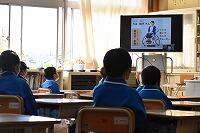 千塚小では、まず全教職員がランチルームに集まり、二つの研究発表を視聴しました情報処理・パソコン