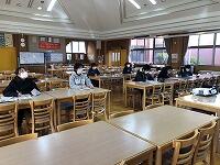 全校集会をランチルームと各教室をつないで行いました。感染状況は、だいぶ収まってきましたが、寒さ対策と移動の時間削減のために、今回もオンラインで行うことにしました情報処理・パソコンコロナ禍での変更は、コロナがおさまってからも、有効なものは継続していきたいと思いますひらめき