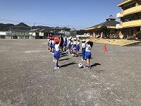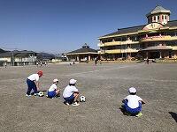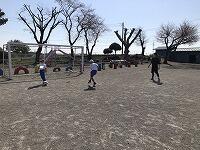 2年生が、体育の時間に校庭でサッカーをしていますぽかぽか陽気でとても気持ちよさそうです
