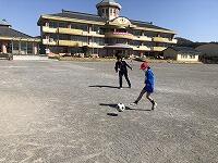 パスの練習から、シュートの練習になり…校庭いっぱいに広がって2人組でおもいっきり走り回りながらボールを追いかけています。