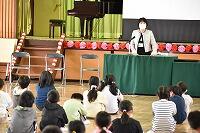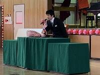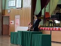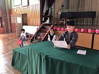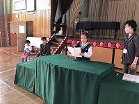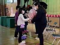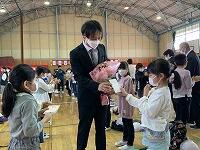 始めに、校長先生から、お一人お一人についてご紹介があり、その後代表児童によるご挨拶の発表をして、代表児童から花束を渡しました今日、お別れするのは、4人の先生方です