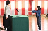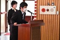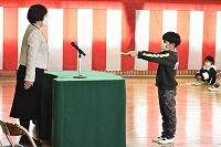 教務主任の先生の呼名や号令に合わせて、返事をしたり礼をしたりします