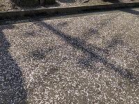 ↓↓最初に開きだした校庭西の樹の下には、おそらく昨日までの雨で、既に花びらがたくさん散っていました。