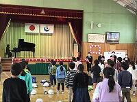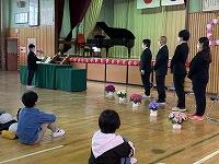 「令和4年度 離任式」を行いました。卒業生も登校し、全校児童と教職員が体育館に集まって実施できました