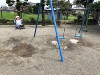 ↓↓不動の人気…ブランコに、あまり集まっていなかったので近くに行ってみると、大きな水たまりがありました。昨夜の雨のせいですね