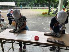 オリエンテーションが終わり、いよいよ楽しみにしていた「杉板焼き」の活動に入りましたにっこり