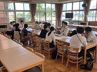 ↓↓ 給食を食べながら、子どもたちはよく話を聞いていました花丸