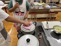 栄養教諭にも途中、アドバイスをいただいて、ピーラーの皮むきや、ゆでることに挑戦しましたピース