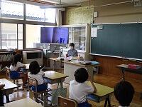 緊張した面持ちでのオンラインによる自己紹介、久しぶりの小学生との交流がスタートです。