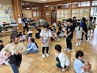 雨のため校庭で遊ぶことはできませんでしたが、教室を広く活用して行いました。