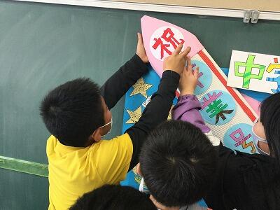 掲示物のテーマは、宇宙です。6年生に「中学校という新しい世界に出発してほしい!!」という4年生の思いが込められています。きっと、6年生へ4年生の思いが届くはずです。