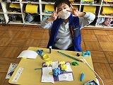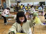 1年生は、図工の時間に「くしゃくしゃかみから大へんしん」を行いました。おはな紙を優しくまるめたり、ねじったりして自分の作りたいものを作り上げました。「紙ってこんなにくしゃくしゃになるんだね。」と多くの子どもたちが驚いていました。楽しく活動することができました。