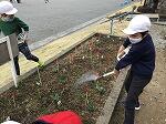 11月に植えたチューリップが芽を出しました。生き物係の友達が水やりをしていると、「ぼくも、手伝います。」と言って、手伝っています。「やったあ。芽が出てきた。」「大きくなってる。」と嬉しそうな2年生です。もうすぐあたたかい春が近付いています。