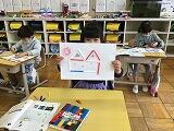 1年生は、算数の時間にストローで三角形や四角形の形作りを行いました。また、三角形や四角形を組み合わせて家やロケット、猫など様々なものも作りました。真剣に取り組むことができた1年生でした。