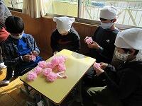 ☆赤・白・ピンクの小花を、毎日たくさん折りました。休み時間や昼休みもがんばりました。