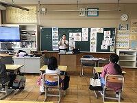 養護教諭の先生が、感染症と熱中症の予防の観点から、手洗い・うがい、手指消毒のこと、マスク着用の場面や外したときの注意点等について話をしました。子どもたちは、とても真剣に聞いていたので、よく理解できたと思います