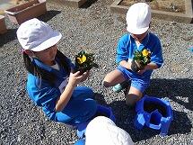 2月18日(月)に1・2年生一緒にパンジーを植えました。5月に「緑の募金」として集めさせていただいた助成金で、パンジーの苗と土を購入しました。これから、毎日水をあげて育てて、3月の卒業式に飾る予定です。お世話になった6年生のために、大切に育てていきたいと思います。