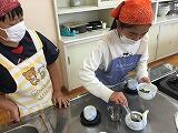 ④ やけどに気を付けて、急須に湯をいれ、1分間蒸らしました!!同じ濃さになるように、少しずつ順番にお茶を入れていきました。学んだことをしっかり生かしています花丸