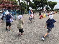 給食終わりのコールサインで、子どもたちは一瞬ちょっとがっかりした様子(「あ~、今日も校庭で遊べないのかな心配・うーん」という気持ちの表れ?!)でしたが、アナウンスの内容は「今日は外で遊べます。でも、体調の悪い人は校庭に出るのは控えましょう。また水分補給をこまめにするようにしてください。・・・」というものだったので、大喜びで校庭に出てきました笑う