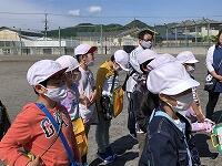 いつもの一斉下校の時のように昇降口前に並んで、児童指導主任の先生から、今日の訪問の目的や確認してくることなどの話を聞きました。