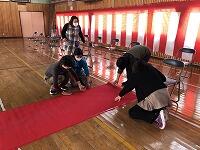 昨日の放課後、職員作業で、体育館に紅白幕と赤絨毯(じゅうたん)を設置しました