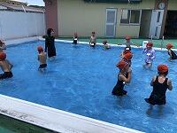 絶好のプール日和になりました1・2年生が、3時間目に今年初めてプールに入りました