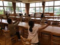 ↓↓始まる前に、養護教諭の先生が、「運動器検診」の方法を確認しました会議・研修