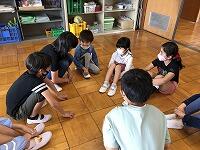 6年生の班長さんの進行で自己紹介…学年・名前と好きなものなどを紹介しました。