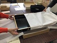 今まで学校で使っていた長机よりも天板が広く、とても使いやすそうです。早速、3台を卒業式に体育館で使わせていただきます