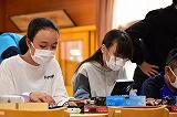 分からないところは、高校生が優しく丁寧に教えてくれ、児童は夢中で作業を行いました。
